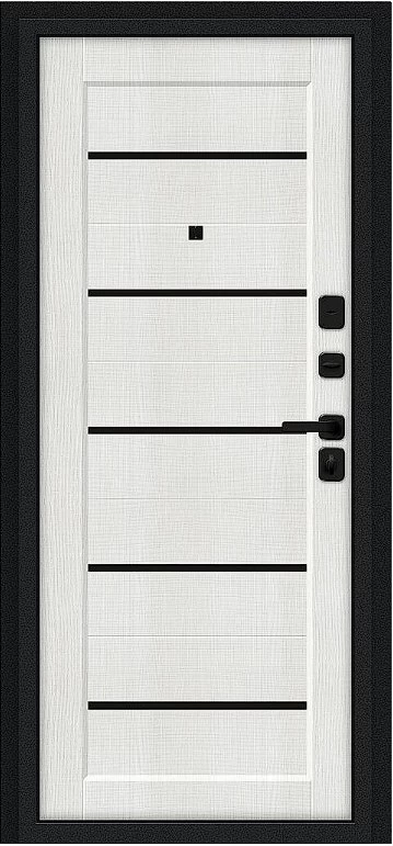 Надежная входная Дверь Браво Борн/SBlack Букле черное/Bianco Melinga премиум класса по цене 33 035 руб. Большая толщина стали защитит от проникновения в ваш дом, квартиру или коттедж. Используется очень качественная фурнитура: замки, цилиндры, ручки, защелки. Покрытие и отделка двери изготовлено под внимательным контролем производителя. Дверь имеет долгий срок службы и гарантию.