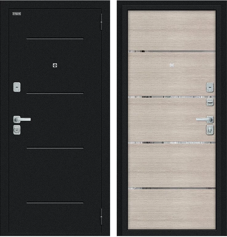 Надежная входная Дверь Браво Лайн/BChrome Букле черное/Cappuccino Melinga премиум класса по цене 31 135 руб. Большая толщина стали защитит от проникновения в ваш дом, квартиру или коттедж. Используется очень качественная фурнитура: замки, цилиндры, ручки, защелки. Покрытие и отделка двери изготовлено под внимательным контролем производителя. Дверь имеет долгий срок службы и гарантию.