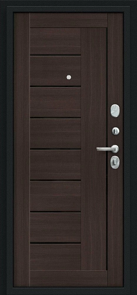 Надежная входная Дверь Браво Проф Букле черное/Wenge Veralinga премиум класса по цене 32 385 руб. Большая толщина стали защитит от проникновения в ваш дом, квартиру или коттедж. Используется очень качественная фурнитура: замки, цилиндры, ручки, защелки. Покрытие и отделка двери изготовлено под внимательным контролем производителя. Дверь имеет долгий срок службы и гарантию.
