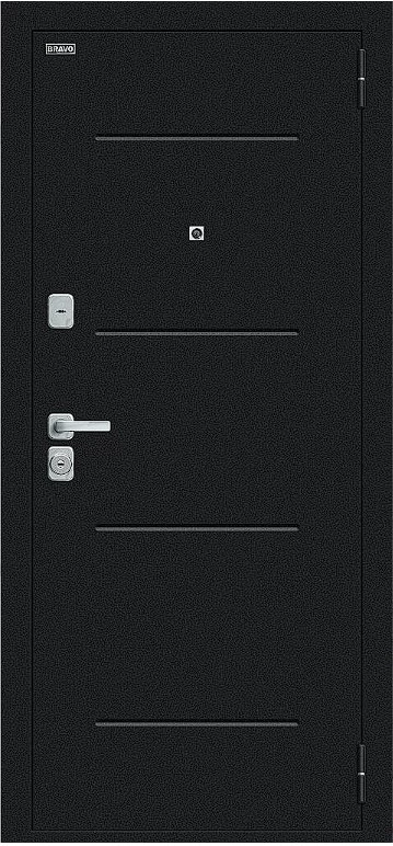 Надежная входная Дверь Браво Техно/BChrome Букле черное/Wenge Melinga премиум класса по цене 34 435 руб. Большая толщина стали защитит от проникновения в ваш дом, квартиру или коттедж. Используется очень качественная фурнитура: замки, цилиндры, ручки, защелки. Покрытие и отделка двери изготовлено под внимательным контролем производителя. Дверь имеет долгий срок службы и гарантию.