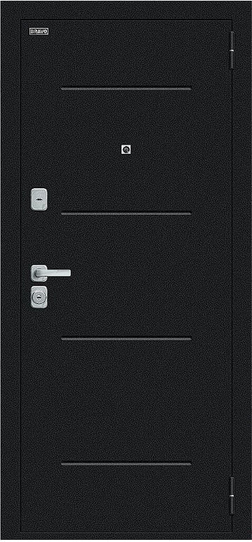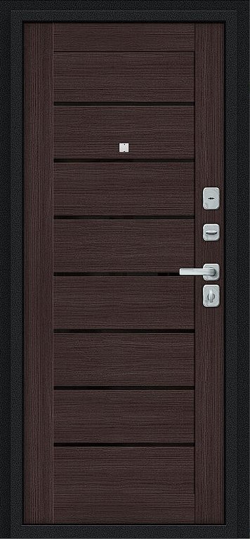 Надежная входная Дверь Браво Техно/BChrome Букле черное/Wenge Melinga премиум класса по цене 32 535 руб. Большая толщина стали защитит от проникновения в ваш дом, квартиру или коттедж. Используется очень качественная фурнитура: замки, цилиндры, ручки, защелки. Покрытие и отделка двери изготовлено под внимательным контролем производителя. Дверь имеет долгий срок службы и гарантию.