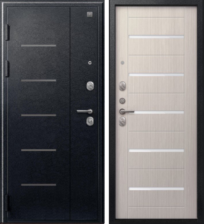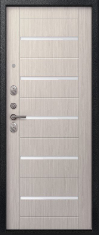 Надежная входная Дверь V-05 Черный муар - Лиственница светлая премиум класса по цене 41 435 руб. Большая толщина стали защитит от проникновения в ваш дом, квартиру или коттедж. Используется очень качественная фурнитура: замки, цилиндры, ручки, защелки. Покрытие и отделка двери изготовлено под внимательным контролем производителя. Дверь имеет долгий срок службы и гарантию.
