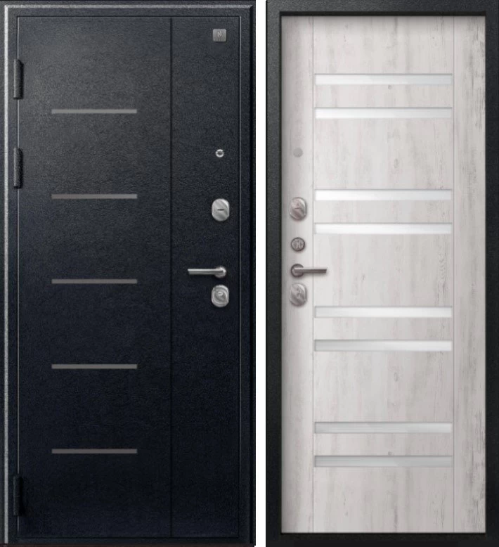Надежная входная Дверь V-07 Черный муар - Дуб пепельный премиум класса по цене 41 435 руб. Большая толщина стали защитит от проникновения в ваш дом, квартиру или коттедж. Используется очень качественная фурнитура: замки, цилиндры, ручки, защелки. Покрытие и отделка двери изготовлено под внимательным контролем производителя. Дверь имеет долгий срок службы и гарантию.